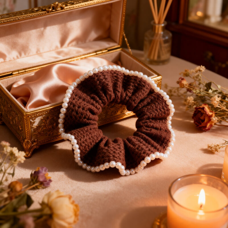 Hot bán phụ kiện bán buôn nhà thiết kế bông hữu cơ Scrunchies trắng Pearl tóc Scrunchy cho phụ nữ