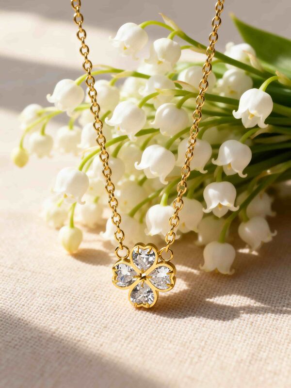 Thiết Kế Tinh Xảo: Mỗi cánh hoa là một viên pha lê cubic zirconia cao cấp hình trái tim, thu hút ánh sáng từ mọi góc độ để tượng trưng cho tình yêu và may mắn.